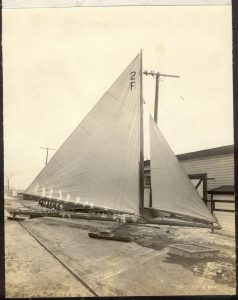The caption in the magazine reads “Evinrude Motor Company: A novelty will be a fully rigged Class F ice boat.” Intrestingly enough, here’s another photo with an “F” on the sail. Thanks to Mike Peters for the photos.